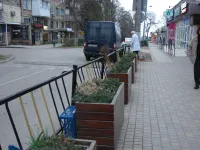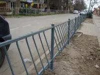 На улице Сморжевского, от рынка и до поворота к супермаркету "4-М", восстановили и покрасили ограждение тротуара от проезжей части дороги.
