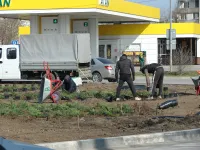 Клумба на транспортном кольце у автовокзала скоро зазеленеет