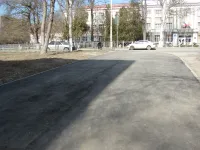 Во время ремонта тротуара и разбитой территории возле школы № 17 ограждение у дороги было демонтировано.