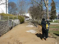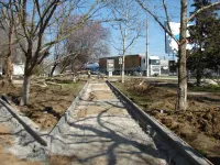 Со стороны стадиона прокладывают новый широкий тротуар.