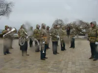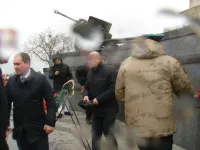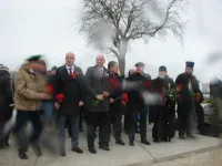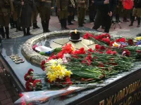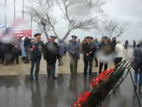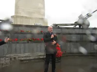 Погода "заплакала" во время возложений у Обелиска Славы - первого памятника погибшим воинам в годы Великой Отечественной войны, установленного в октябре 1944 года на керченской земле горы Митридат.