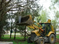 Сегодня работы ведутся в сквере у улицы Андрея Первозванного. На подходе к нему убирается сухостой и спиливаются сухие ветви высоких деревьев, передает КерчьФМ.