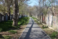 От улицы Комарова заасфальтирован оживленный тротуар, ведущий к улице Заречной.
