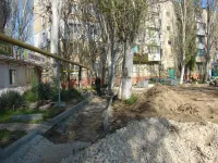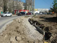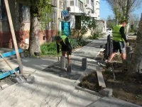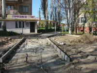 Со стороны жилых домов по улице Гайдара мостят тротуар новой плиткой.