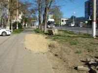 С обеих сторон остановки "Луч" разрытия засыпаны и практически полностью восстановлено тротуарное покрытие.