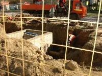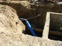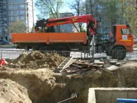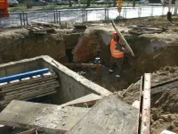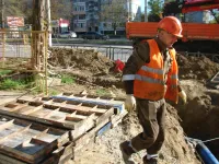 Рядом с домом № 70 по улице Генерала Петрова завершаются работы по состыковке труб нового магистрального водовода.
