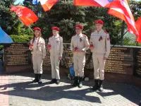 Участники торжественного мероприятия - представители руководства города, ведомств "Росавтотранс", "Ространснадзор", других подведомственных организаций Минтранса Российской Федерации, представители ветеранских активов города-героя и юнармейцы - возложили красные гвоздики к Вечному огню и почтили память погибших в боях за Керчь минутой молчания.