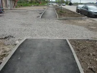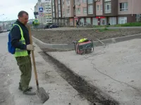 Подрядчик "СУ 7" в минувшую субботу работал до позднего вечера, завершая асфальтировку внутриквартальной дороги и тротуаров.