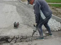 На съезде на основную дорогу выравнивал стык.