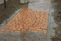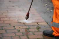 Сильным напором воды, без ущерба для плиточного покрытия, таким образом вымываются грязь, мох, трава, которая прорастает между плитками.