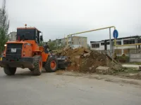 Смонтировано 2500 кв. м поребриков. Идет закладка фундамента для установки опор наружного освещения с параллельной прокладкой кабеля для видеонаблюдения по улице Гайдара.