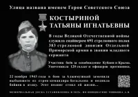 В Керчи на 17 сессии городского совета приняли решение об установлении двух мемориальных досок. Первую установят для увековечивания памяти Героя Советского Союза Костыриной Татьяны Игнатьевны на фасаде нежилого здания по ул. Костыриной, 1, - передает КерчьФМ.
