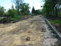 Помимо всего, через заросшую территорию бульдозер прокладывает дорожки, где будут обустроены боковые подходные тротуары, ведущие к центру парка.