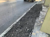 В ходе асфальтировки дороги по Кирова тротуар на ней был разобран, затем установлен бордюр и дальше в этом месте работы не велись.