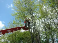 Сегодня от них освобождали деревья, растущие вдоль дороги по улице Комарова.