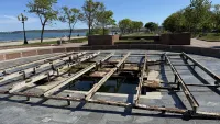 В Керчи на городской набережной от фонтана остались лишь воспоминания - на ограждённом месте находятся железные перекладины, а часть его залита водой. Администрация Керчи не ограждает опасный элемент и не ремонтирует. Горожане предлагали уже несколько раз чиновникам сделать из него клумбу, но никто не хочет, - передает КерчьФМ.
