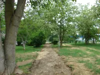 Работы здесь были начаты в марте с обрезки деревьев и демонтажа тротуарной плитки и старых бордюров.