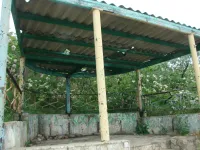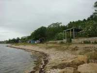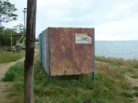 Из трех спусков целым остался лишь один, размытый берег, камни, разрушенная беседка, допотопные раздевалки, поросль внизу и заросли сверху. Полное отсутствие песка.