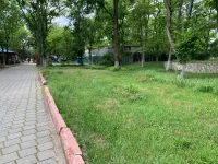 Отметим, что местами в парке трава скошена. У кафе и рядом с атракционами на клумбах относительный порядок.