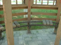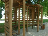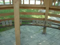 Установили беседки с круговыми лавочками.