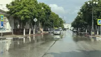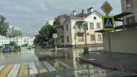 Дороги для проезда машин чистые, только в некоторых местах есть лужи. Вода быстро стекла с проезжей части. А вот пешеходам придется сегодня искать места как перейти дорогу не намочив ноги.