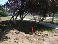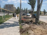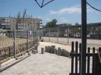 Завершено мощение плиточного покрытия вдоль фасада КРЭС и боковых подходов к зданию.