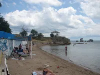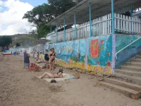 Берег и морская вода очищены от водорослей. Отдыхающие смело располагаются на берегу, не боясь испачкаться или уколоться о сорняки.