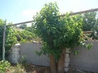 Кто и когда решил складировать через невысокий забор во двор дома ветки высоких деревьев, спиленных вдоль улицы, она не знает.