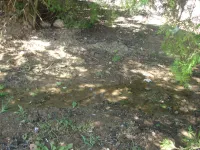 Ручей берет свое начало на газоне и вытекает на дорогу.