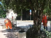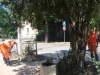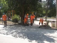 Для безопасности пешеходов центральный вход в сквер оградили металлическим забором, передает КерчьФМ.