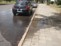 Вчера вода бежала на Кирова по улице Андрея Первозванного, сегодня струя "вздумала" бить у дома № 103.