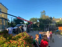Ни ее, ни длинной лестницы у управляющей компании нет. Электрикам ЖЭУ потребовалась помощь.