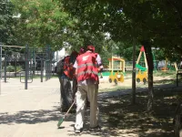 В Керчи продолжается регулярная работа по уборке межквартальных пространств.