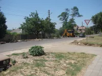 На Кирова в Керчи снимают старые бордюры в районе Сморжевского