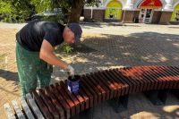 Дальше по плану - частичная замена досок и покраска скамеек на улице Ленина. А также в сквере у генеалогического дерева.