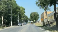 Из-за работ движение транспорта в строну бывшего аэропорта частично ограничено по одной полосе.