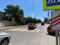 На очень оживленном участке дороги по улице Кокорина дорожная служба керченского филиала предприятия "Крымавтодор" обустроила новый пешеходный переход.