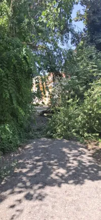 Ветка перегородила еще и тротуар. К счастью, никто не пострадал.