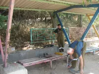 Сегодня СГХ трудится над ремонтом опор для лавочек под навесами.