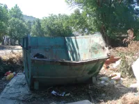 Здесь есть и обычные мусорные контейнеры и "лодочка" .
