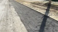 На сегодняшний день на улице сегодня трудится несколько человек и две единицы техники. Асфальт уложили только в один слой, заасфальтировали почти половину длины траншеи.