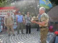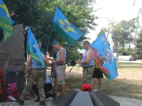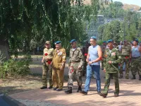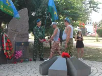 Затем возложение цветов состоялось у памятного знак в сквере афганцев, среди которых было много десантников.