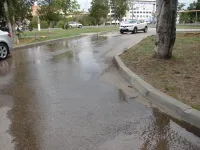 Вода скапливается на выезде со дворов МКД и бежит далее по проезжей части дороги, передает КерчьФМ.