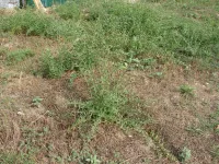 Вдоль тропинок и тротуара к их дому от остановки "23 школа" растет амброзия.