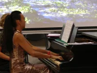 Прежде чем гостям выставки были представлены шедевры золотых рук автора, они смогли оценить ее виртуозное мастерство игры на рояле. Музыкальные композиции были исполнены на фоне фотографий не менее изумительных крымских пейзажей.