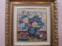 На картинах Элеоноры больше тысячи цветов, автор всегда подбирает их самостоятельно, использует бленды и солиды, нитки всех известных фирм и стран: французские, немецкие, российские, а также китайские и индийские мулине, люрекс, шелк.