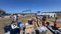 Со стороны Керчи на автоподходах к Крымскому мосту волонтёры Российского Красного Креста установили три палатки.