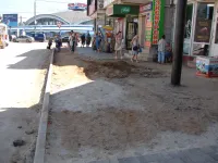 На пассажирской платформе общественного транспорта у автовокзала тротуарная плитка обновлена более чем на 2/3.