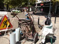 Чтобы не задеть и не повредить другие подземные коммуникации, траншеи в отдельных местах копают вручную, без применения тяжелой техники.