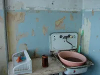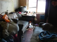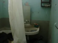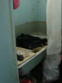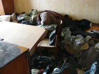 Квартира находится в ужасном состоянии: входная дверь снаружи закрывается на ножик, все захламлено, ни воды, ни света, ни газа.